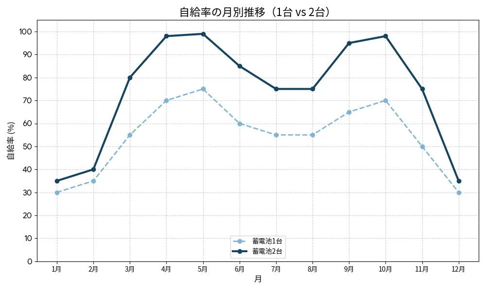 2台で分散させた方が充放電の深さを抑えやすくなります。