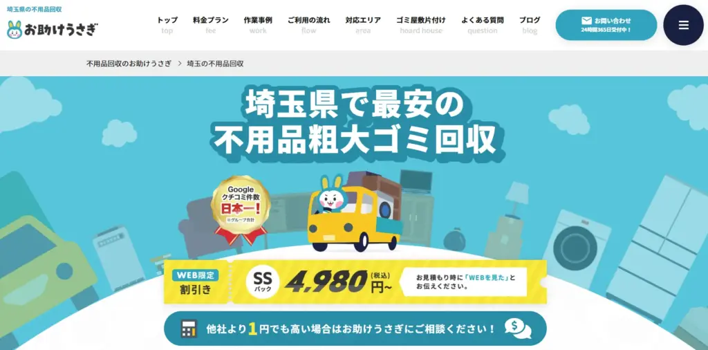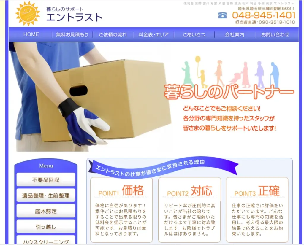 サービス内容不用品回収、粗大ごみ回収、遺品整理、ゴミ屋敷片付け、ハウスクリーニング、不用品買取