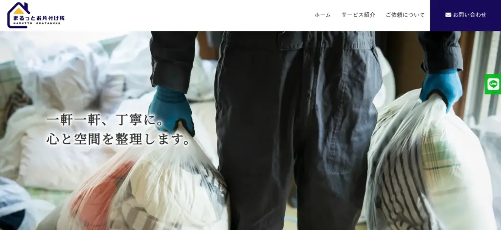 サービス内容 | 不用品回収、粗大ごみ回収、遺品整理、ゴミ屋敷片付け、ハウスクリーニング、不用品買取 |