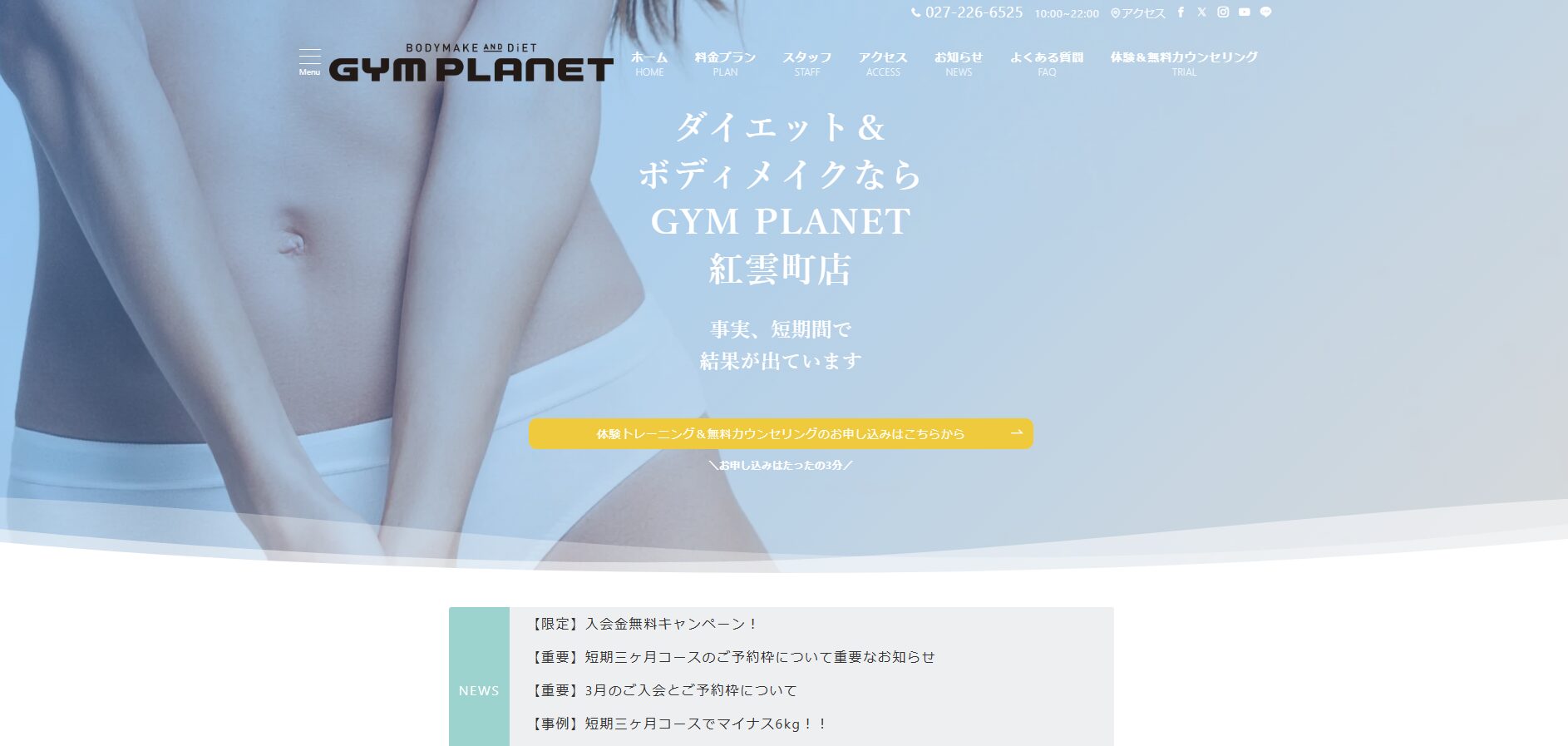 | 体験 | 無料カウンセリング・体験トレーニング |