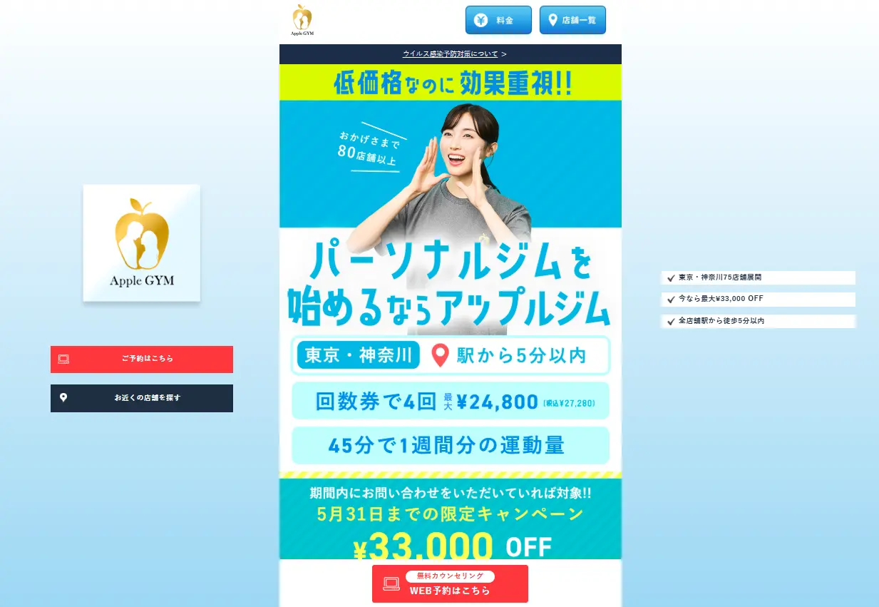 | 体験 | 無料カウンセリング・体験トレーニング |