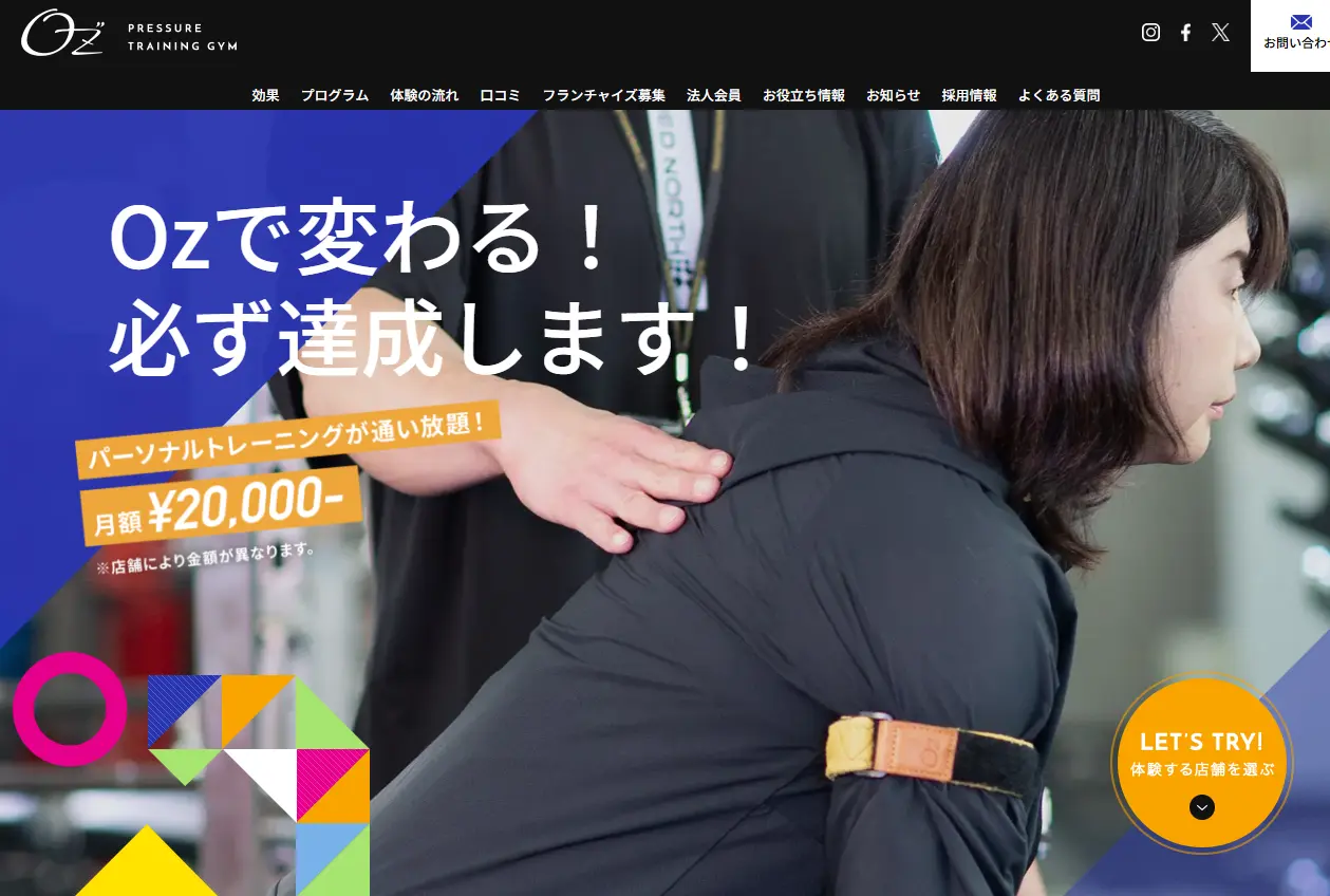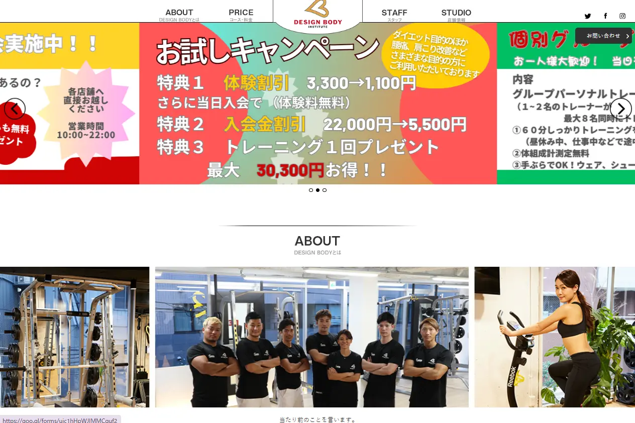 | 体験 | 入会金5円・パーソナルトレーニング体験30分無料 |